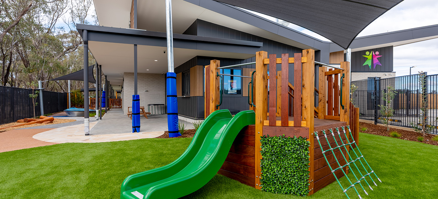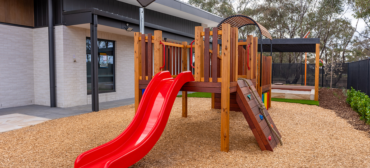 This Tarneit childcare playground project involved compliant playground construction and outdoor landscape works. Designed by childcare playground experts. Built for high-use childcare…