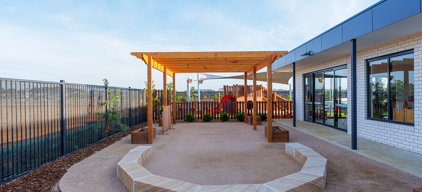 This Armstrong Creek childcare playground project features structured outdoor play and integrated landscape elements. Delivered by specialist childcare landscapers. Designed for safe, high-use childcare playgrounds.