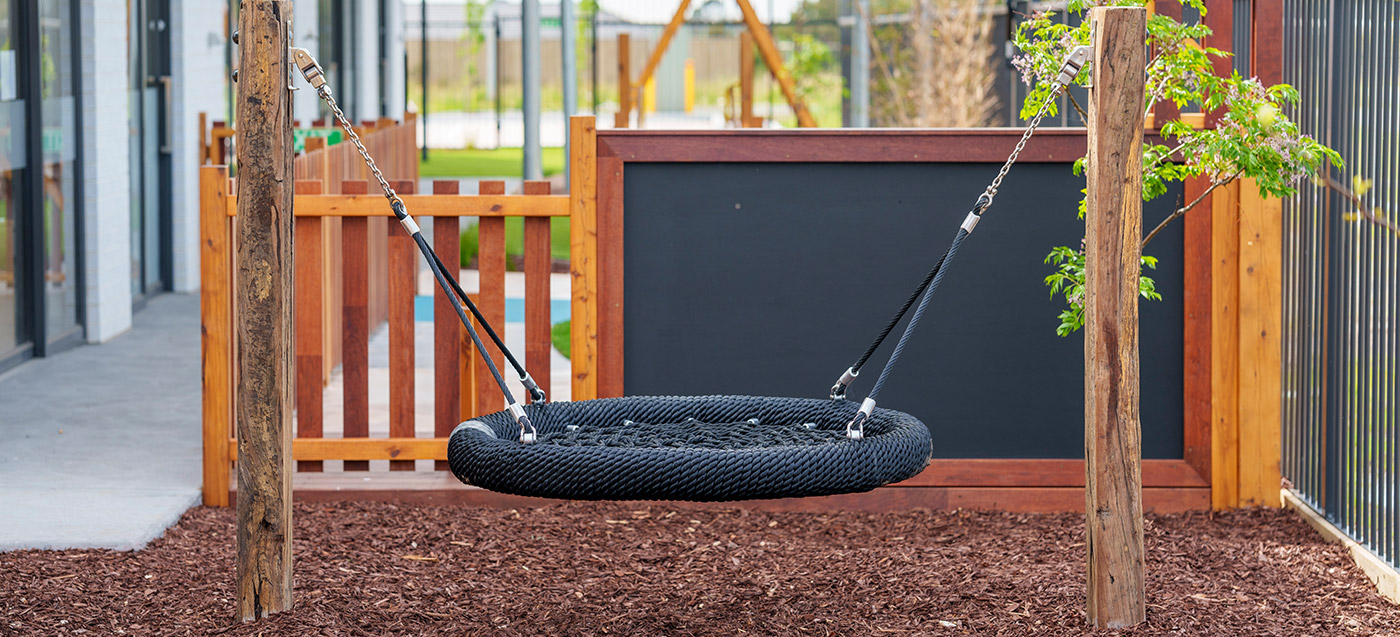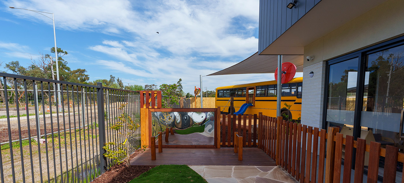 A Cranbourne childcare playground constructed with compliant safety surfacing and custom play zones. Our childcare landscapers delivered a practical and engaging outdoor layout. Designed specifically for early learning use.